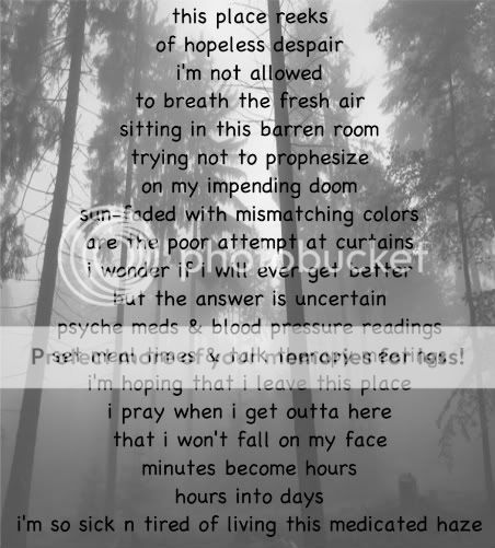 - I am a 28 year old female who has been through a lot of bullshit so far in my life...I have 3 beautiful children 6 and 7 and my son is 5 yr.s old...I have been married for three years and divorced for four years...I am a very blunt in your face kind of person...which CAN be good OR bad depending on the situation I am in. I love to write, draw, paint, create many types of jewelry and of course PLAY WITH MY LAPTOP COMPUTER!! I do not work because I am severely disabled by my MANY emotional disorders which have gotten WAY worse!! I am also a GOD fearing Christian who goes to church on a regular basis..leave me some comments on my blogs and tell me what you think k??